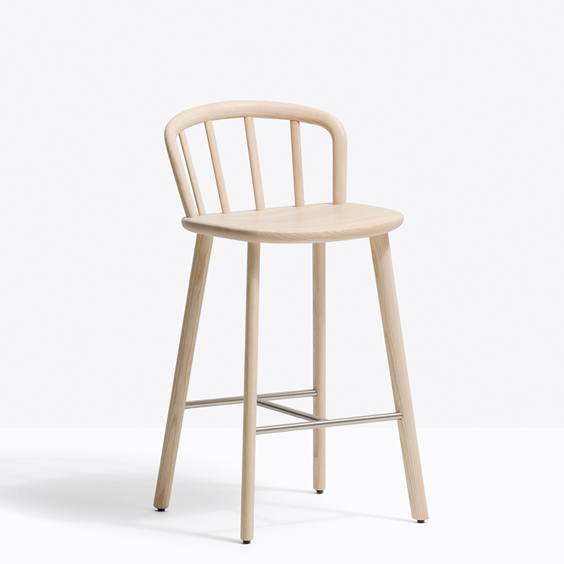 Italian manufactured wooden high chair with a stained wood finish and wooden 4 leg frame.