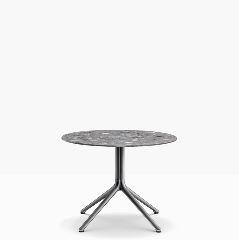 Italian manufactured circular coffee table with a white or black marbled top and 4 leg base.