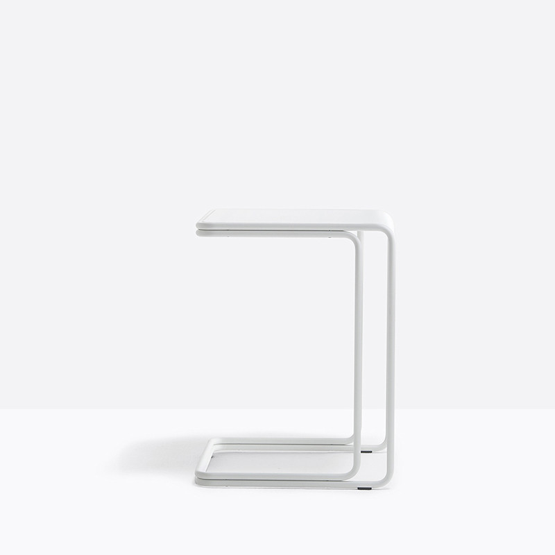 A versatile table with an informal style, thought to be a smart supporter or work counter and designed also to be leaned upon the sofa armrest. Coffee table with steel tube Ø 16mm frame and methacrylate top.