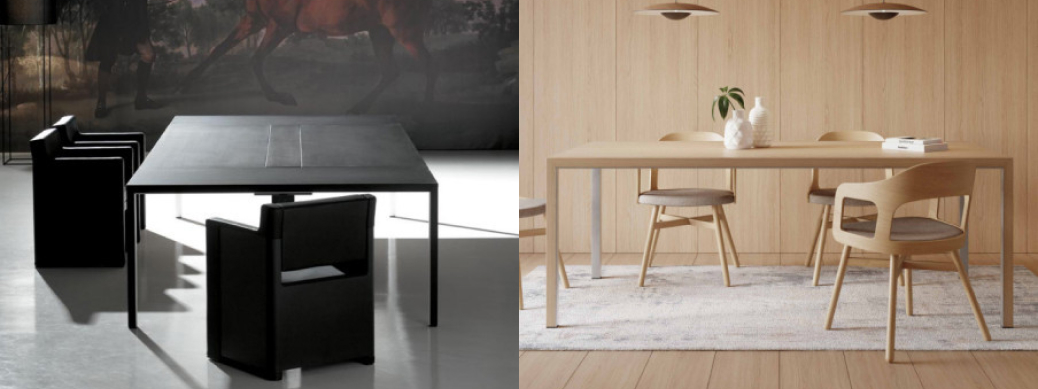 The DM range covers conference tables which are elegant, minimalist and designed to support collaboration in modern workspaces. The tables are available in multiple sizes and layouts for flexible office / meeting spaces. For instance, the DM Nero Conference Table (above, left) is available in a range of finishes. The pad can be fixed in place or can be folding / moveable.