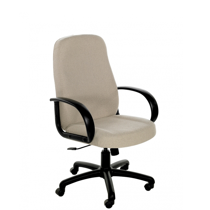 Task chair with medium backrest, tilt mechanism and fixed arms.
