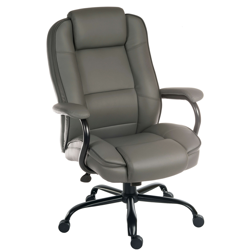 Executive chair with a steel base and fixed arms. Heavy Duty tilt mechanism with tension control and upholstered in black, grey or cream faux leather.