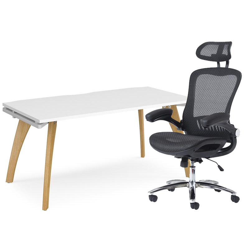 Straight white top on a fusion leg frame with a Link mesh chair.