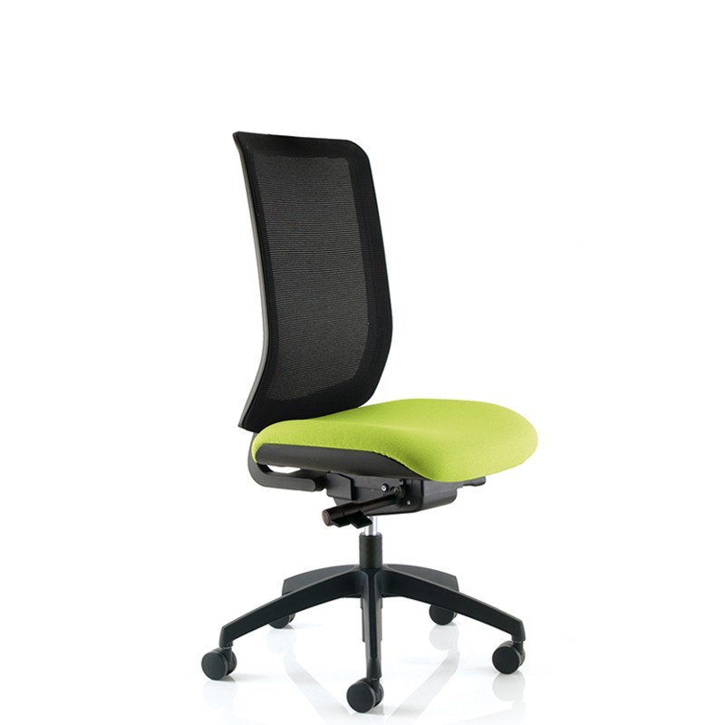 The Trinity mesh office chair has an soft and thick foam padded upholstered seat, shown in Apple.  Customisable with optional matching headrest and height adjustable arms, Trinity gives the best in office seating.