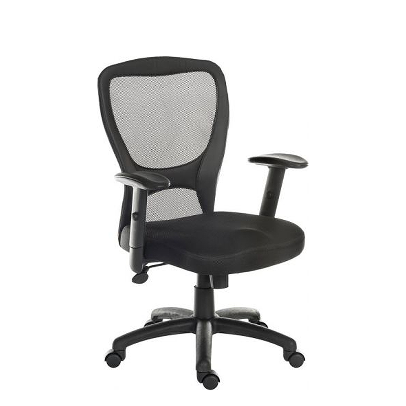 Mesh backed chair with height adjustable arms. Tilt mechanism with tension control and airmesh seat.